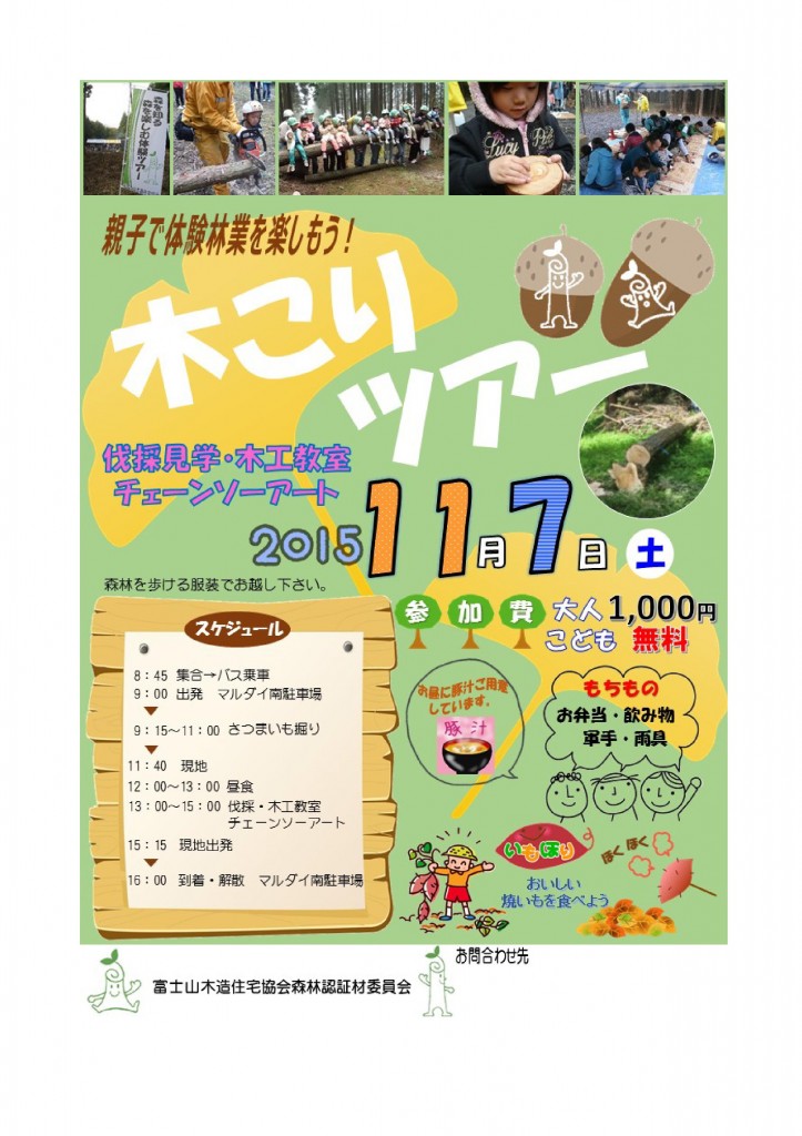 今年最後の木こりツアーを11月7日(土)に開催いたします。秋に開催する木こりツアーも毎年毎年大盛況で、多くのお客様にご参加いただいております。