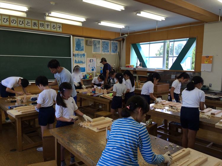 今年一年、子供たちが通う小学校で工作クラブの授業を受け持たせて頂きました。学校からの要請で地域の方々に、「GT(ゲスト・ティーチャー)として何か得意なことを子供たちに教えてください」というお便りが配られて、大工さんと何か協力できないかということで始めることになりました。