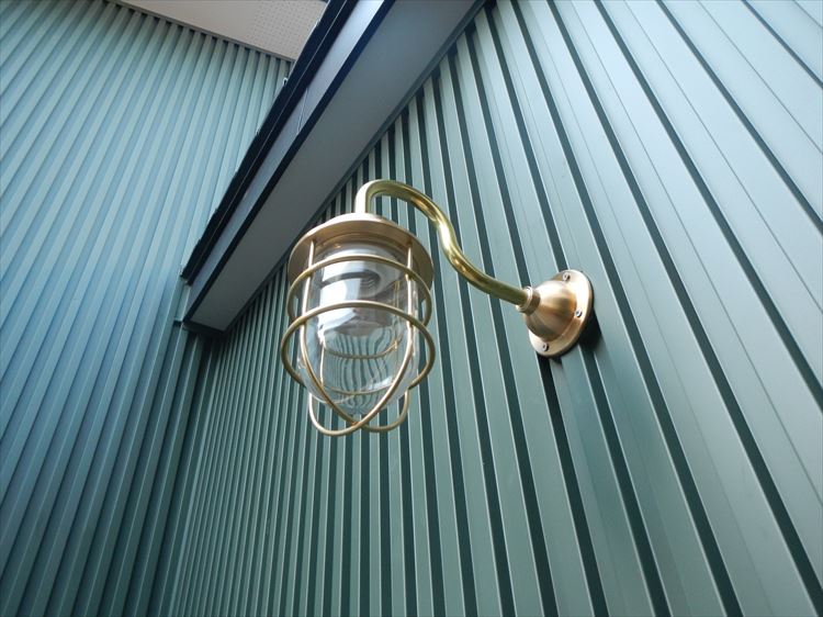 お客様が選ばれたカワイイポーチライトも緑のガルバリウムにとても良く合い、感じ良く仕上がっております。完成まであと少し。協力業者の皆様、引き続きご協力のほど宜しくお願いいたします。