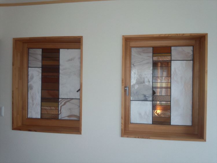我が家の吹き抜けにある4つの内窓。この窓にステンドグラスを埋め込んだらどうか?という案が出てから櫻井弓子さんとのお付き合いが始まりました。出会いからすでに7年、今でも家族ぐるみのお付き合いをさせて頂いております。