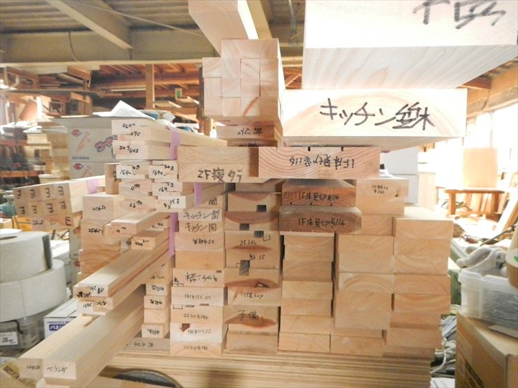 今月から次々と建前が続いていくので、大工さんたちは事前準備で大忙し。建前が終わってから工程上タイミングを見て加工場に帰ってきて作業することが出来そうもないので、今のうちに出来るだけの準備をしておく必要があります。