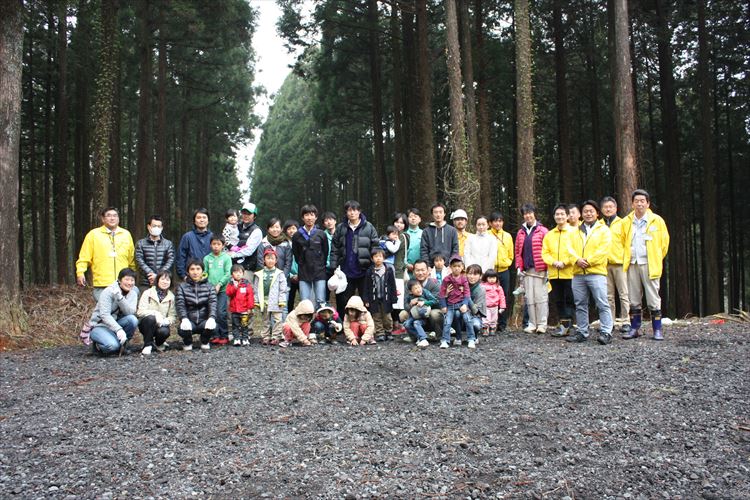 弊社が所属する富士山木造住宅協会の森林認証材委員会で開催した「木こりツアー」にお客様と参加してきました。今回の木こりツアーは時期的にもヒノキの苗木の植林がメインでしたが、木こりの皆さんに来ていただいての伐採体験、マイ箸作りの木工教室を追加企画して森での活動を充実させ、その後製材所見学という流れで楽しんできました。