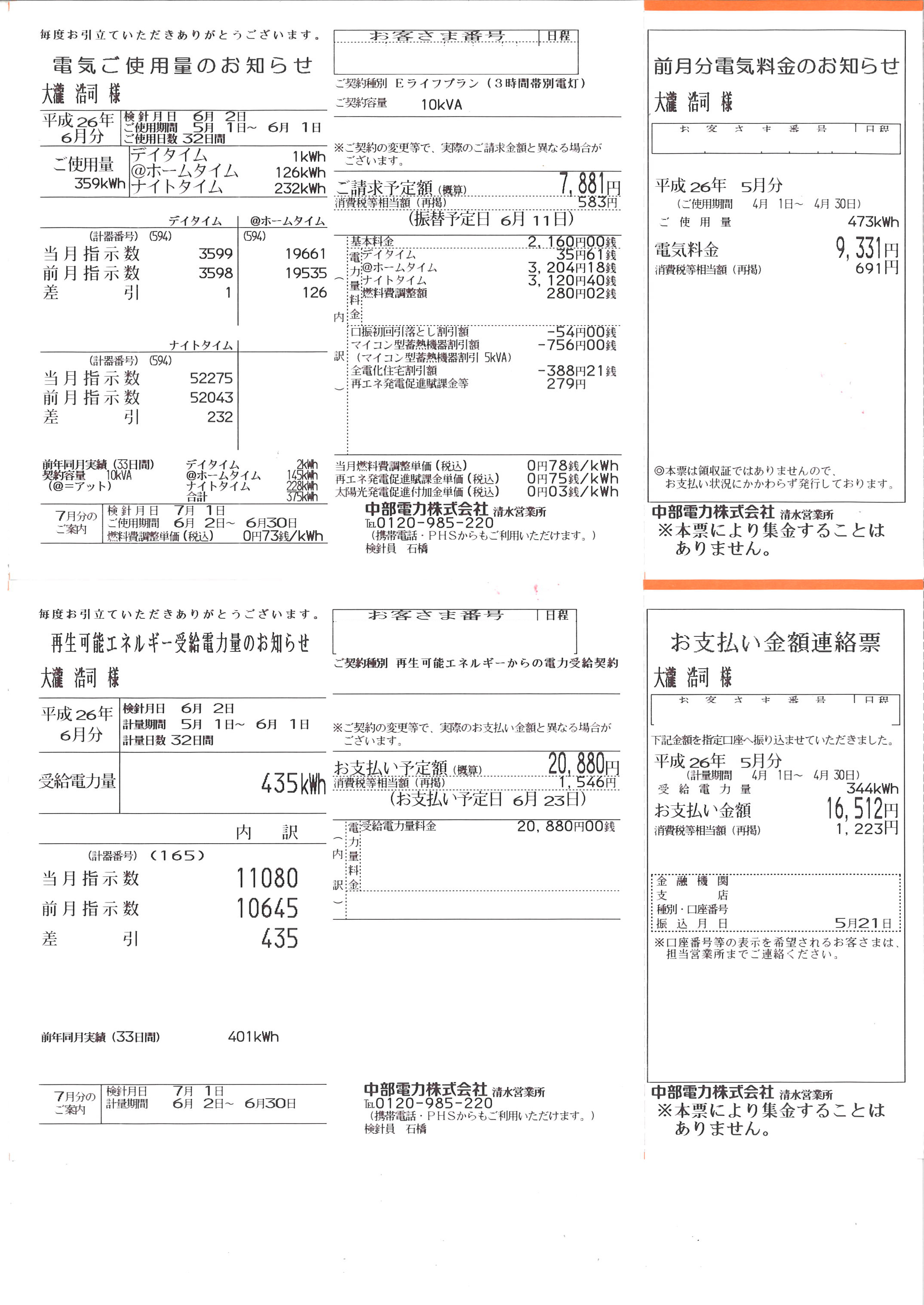 今月も先月に続いて我が家の電気料金を公開したいと思います。春から夏にかけての中間期ということで空気が気持ちい季節ですので、自然風の調整でパッシブな暮らしがし易い季節。当然、暖房も冷房も運転していないので太陽光の恩恵もバッチリ受けやすい季節でもありますね。