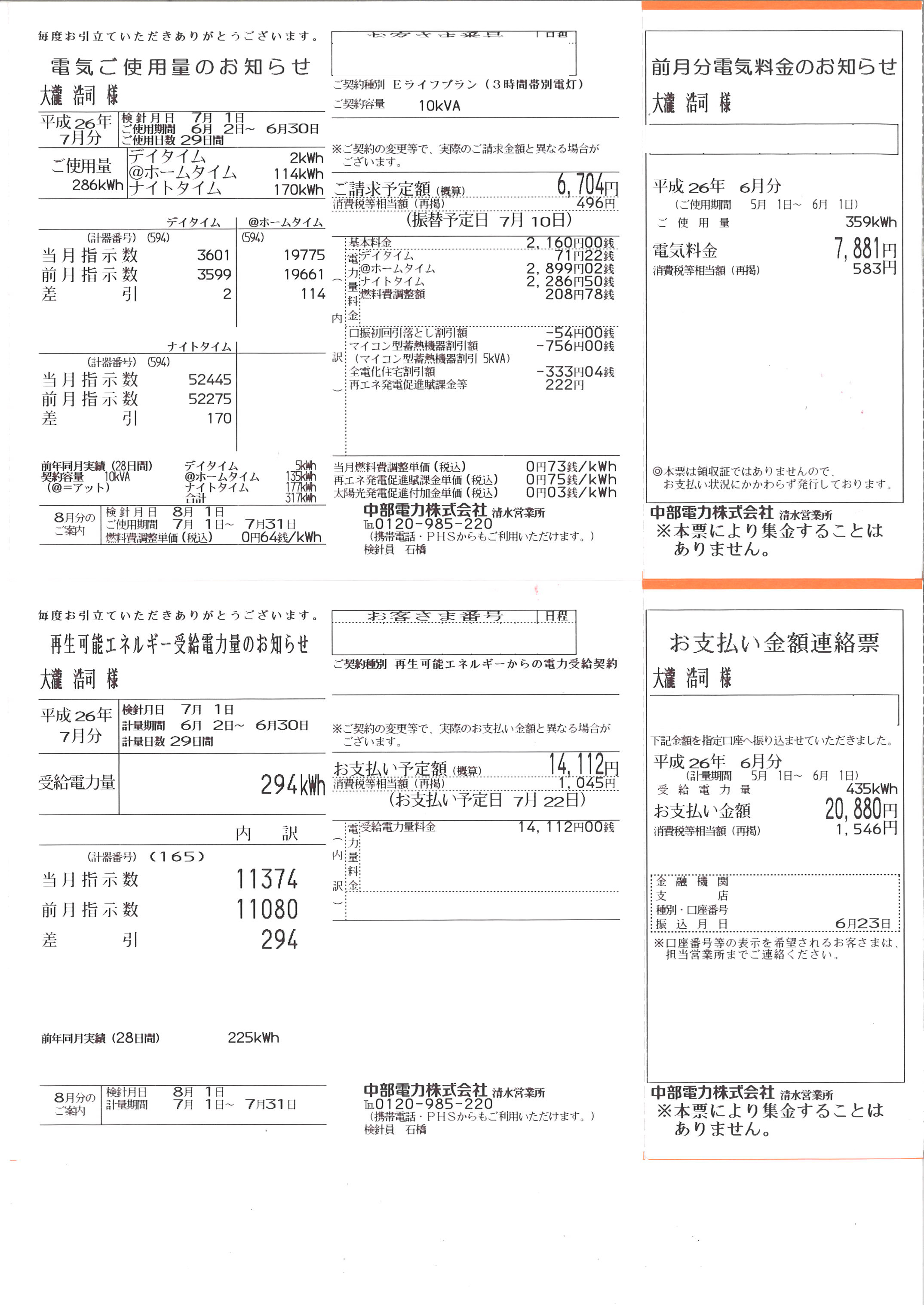 我が家の電気料金公開@6月