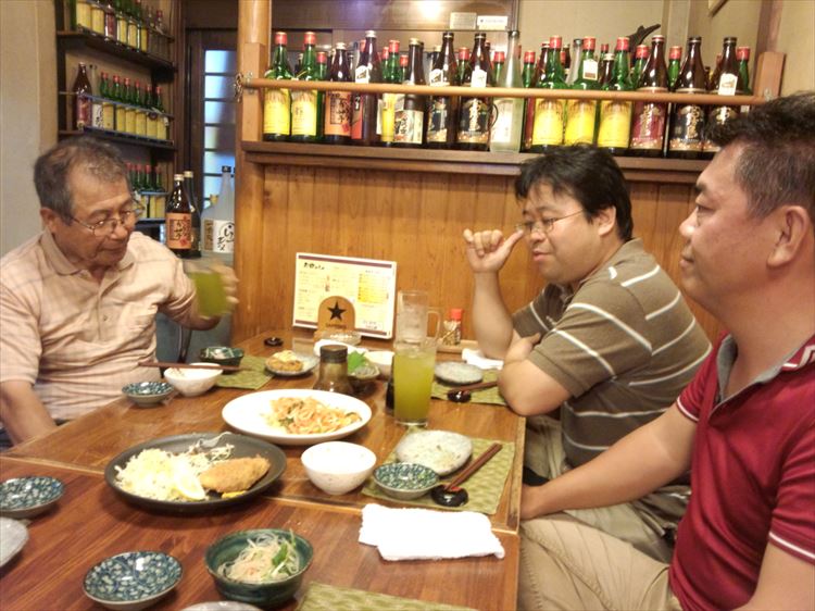 早々に調査を切り上げ、釣った魚をもって、いつもお世話になっている新清水駅前の”ろばた都”で懇親会を開催しました。何を食べても美味しいお店ですが、静岡にせっかく来たので、生シラス・もつカレー・桜海老のかき揚げ・黒はんぺん等を食べて頂きました。旨しです。