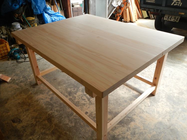 さすがにヒノキの一枚板は無いので、150㎜の幅のヒノキの板を接いで所定の大きさに仕上げております。