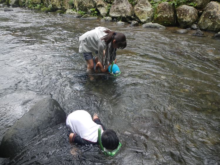 テントを設営したところのすぐ下が浅瀬の川となっているので川遊びには最適です。海ではまだまともに使ったことのないシュノーケルの練習がてら川に入ったのですが、水温がとても低くて長く遊んでいられませんでした。とりあえず川魚を見ることが出来たようなので良しとしましょう。