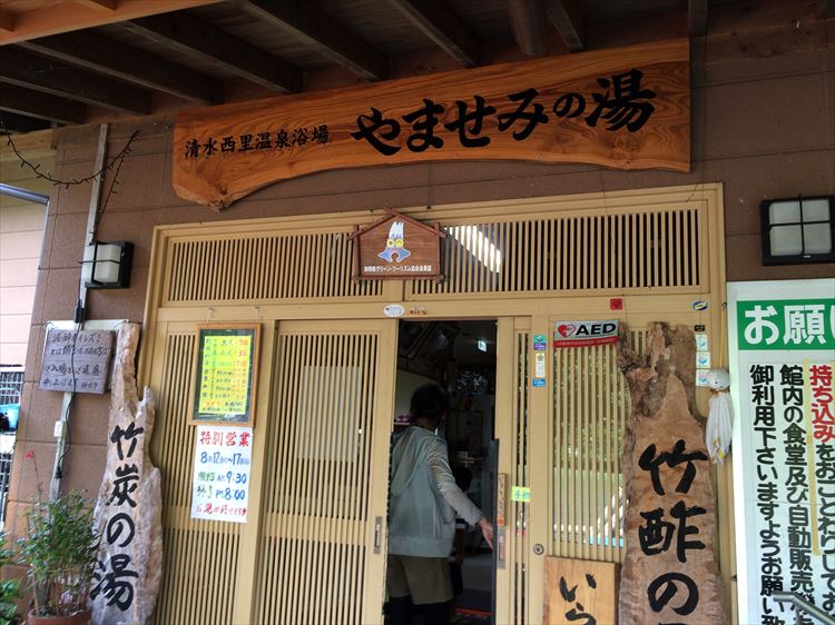 体が冷えきってしまったので、ちょっと早い時間でしたが、キャンプ場近くにある「やませみの湯」に温泉に浸かりに行ってきました。保険の関係で大人は無料。子供達のみの料金でゆっくりすることが出来ました。