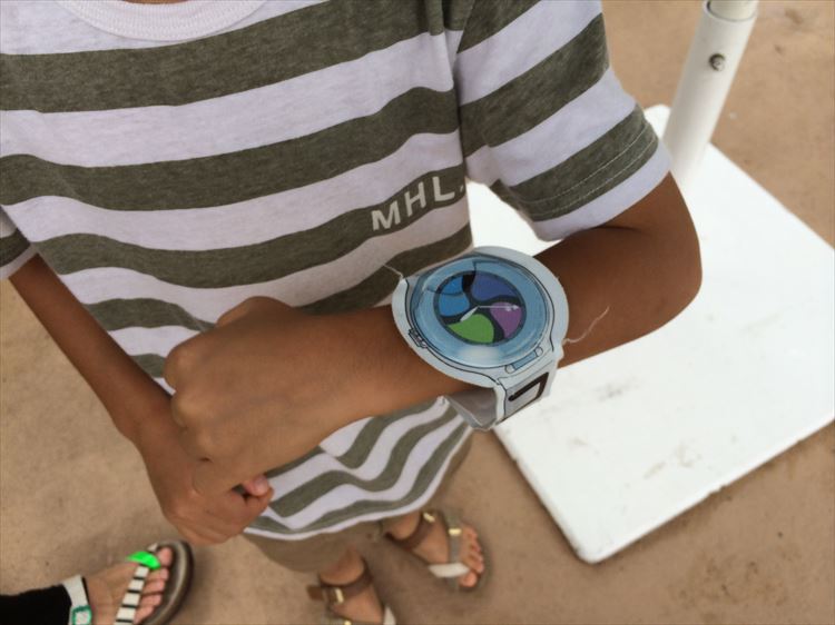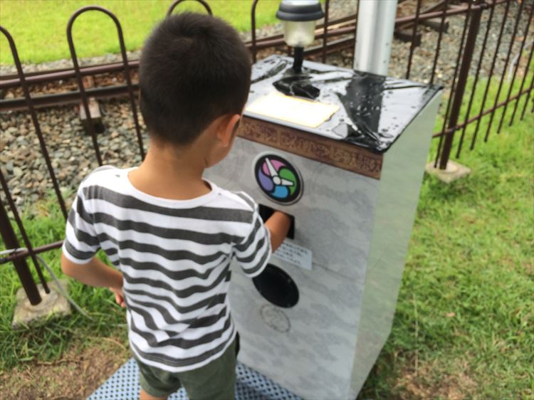 妖怪ウォッチのアトラクションは、施設内に隠された所定の箱を探し出して、貸し出された妖怪ウォッチを箱に突っ込むことで、10体の妖怪を手に入れることが出来るというものでした。手に入れた妖怪は最後にシールにプリントされたものが貰えます。