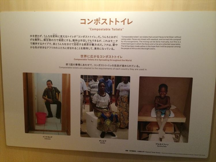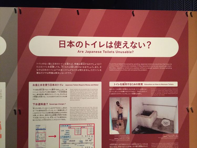 世界各地のトイレ事情のコーナーでは、如何に我々が恵まれた生活が送られているのかを再認識させられました。トイレが無い地域・トイレの認識が無い地域、日本のトイレ持って行っても問題は解決されません。その地域に合わせた設備・教育がとても必要なようですね。