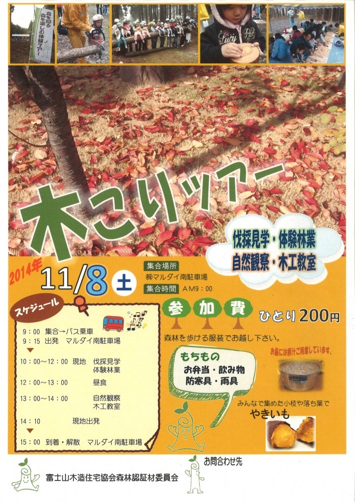 弊社が所属する富士山木造住宅協会の森林認証材委員会が主催する木こりツアーの詳細が決まりましたのでお知らせいたします。