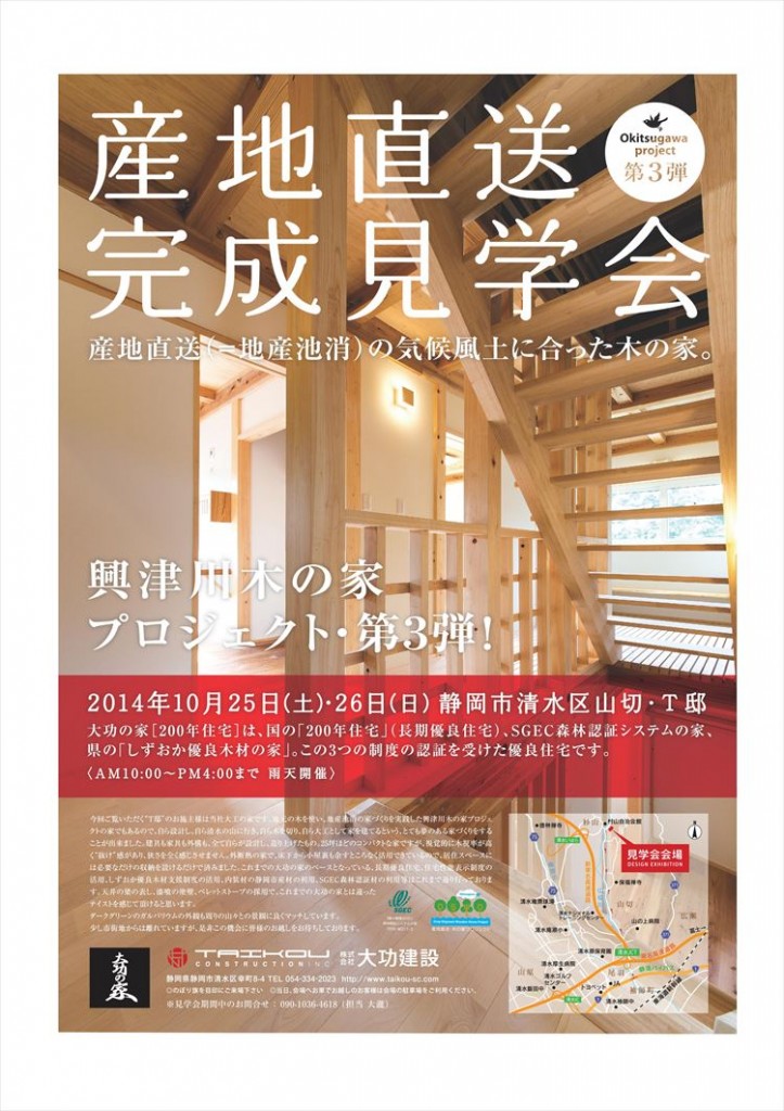 近隣の皆様には本日の折り込みチラシでご覧になられた方もいらっしゃるかと思いますが、明日と明後日で静岡市清水区山切のお宅の完成見学会を開催いたします。