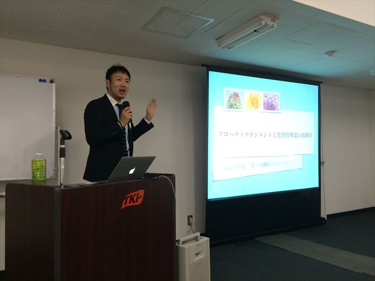 今井さんからは、「プロパティマネジメントと賃貸管理業の夜明け」と題して、独自の視点で市場調査した結果をもとにオーナーさんへのアプローチの仕方等をお話して頂きました。お客様目線での提案の仕方など、建設業にも通じるものを感じました。