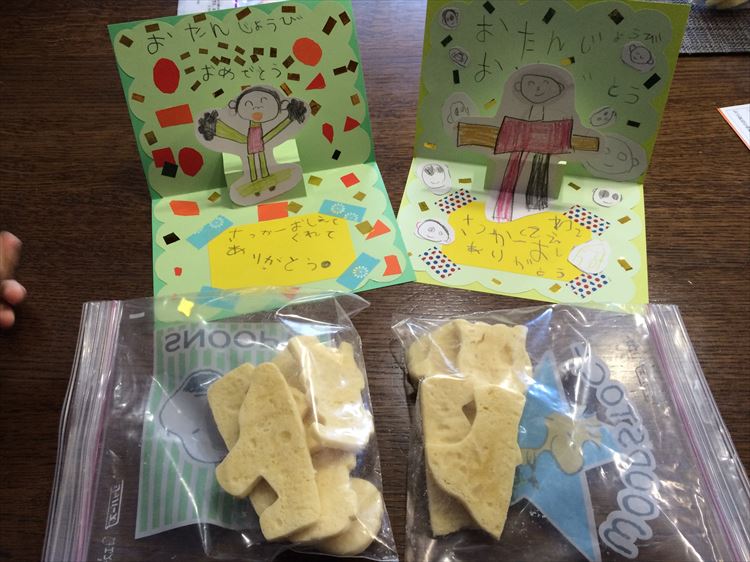 朝起きると子供達からは素敵なプレゼントが!! 手作りのクッキーと手作りのメッセージカードを頂きました(涙)。