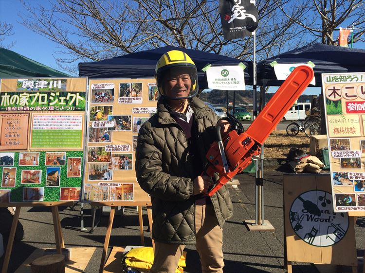 昨年に引き続き、今年もオクシズ森林の市に参加させて頂きました。昨年は私が所属する静岡木質バイオマス研究会のメンバーとしてペレットストーブの展示手伝いとしての参加でしたが、今回は私たちが取り組んでいる興津川木の家プロジェクトメンバーとしての参加です。