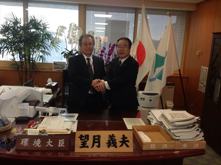 皆さんもご存じのとおり、環境大臣の望月義男氏は地元静岡・清水からの選出。調べるとどこかで繋がりがあったりするもので、最近社長が良くお会いしている方が、大臣にとても近い方だったようです。そんな伝手から大臣にお会いできる機会を頂くことが出来ました。