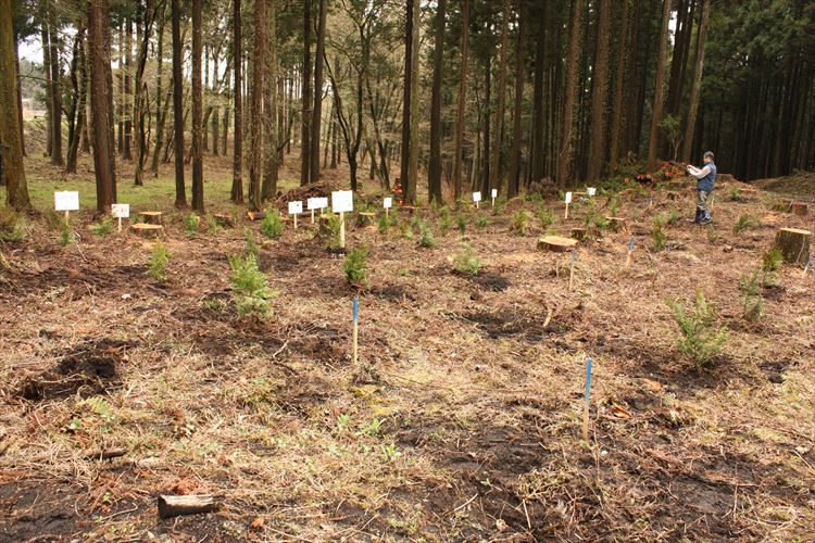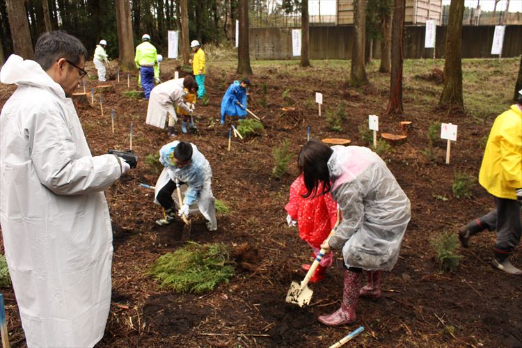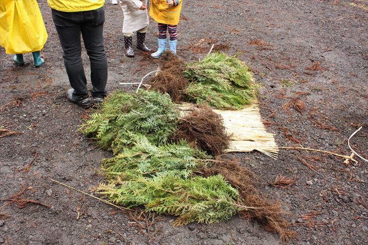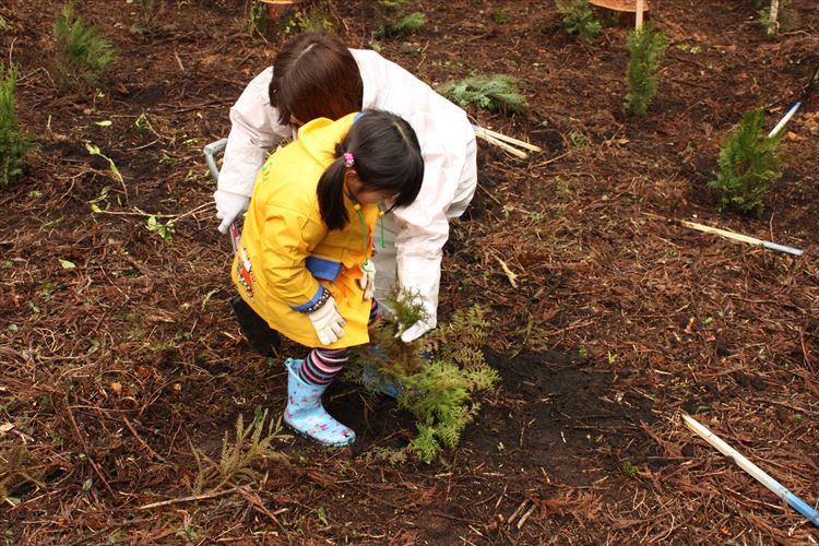 続いて植林作業。一部小規模皆伐したエリアに植林したので細かな根っこが多く、スコップの使い方もままならない小学生の子供達の力では30㎝程の穴を掘るのも一苦労でした。お父さんに頑張ってもらって、200本近い苗木も何とか植えることができてノルマ達成!! 結構ヘトヘトでした。。。