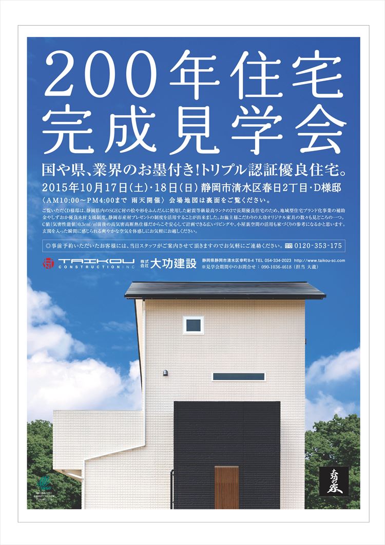 今週末に完成見学会を行わせて頂く静岡市清水区春日二丁目のお宅も、関係業者さん達のお蔭でほぼ準備が整いました。工程がタイトな中、本当にありがとうございました。