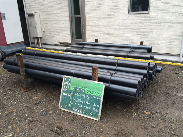 調査の結果、施工性や経済性を考慮して、鋼管杭を打設することに決めたのですが、支持層の深さに対して何mの杭が必要かは事前に分かりますので、計画通りの長さと本数かチェックしておきます。