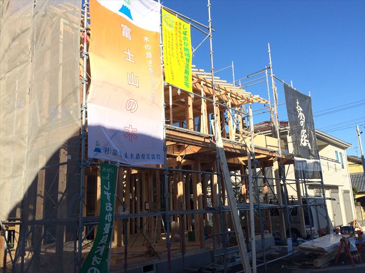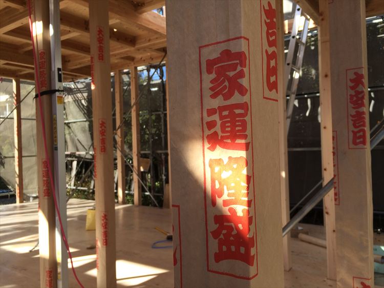 年末の繁忙期と生コンミキサー車の小型車指定という現場条件が重なってしまい、予定していた上棟日からずれてしまいましたが、先日の日の良い大安の日に無事に上棟することが出来ました。