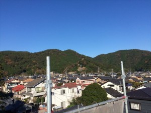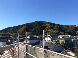 「羽鳥の家」は真壁仕上げといって、柱を隠してしまうのではなく仕上げに見せる仕上げで、梁桁も殆ど化粧で見えます。見える木のほぼ全てが静岡県内、静岡市内の材料です。屋根の上から見えるこの山々の奥から切り出された木で、何か山と家が繋がっているような感覚になるのは私だけでしょうか?