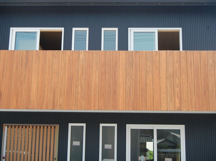 10時頃に現場に行ったのですが、太陽の光が良く入り、予想通りとても明るい感じでした。外壁の黒のガルバリウムも明るい空に良く映えて、ベランダ腰板の杉の板とのコントラストも非常に良かったです。もう少しで完成となりますので、大工さん達も暑い中大変かと思いますが、熱中症に気を付けてラストスパート宜しくお願いします。