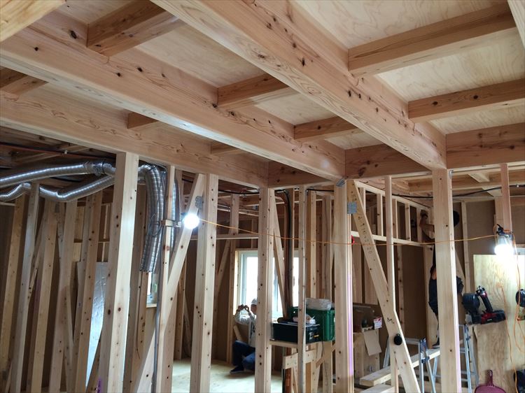 ちょうど今、気密測定が終わり、壁の中が見える状況ですので、大功の家の秘密となる部分を皆様に見ていただきたいと思いまして、お客様のご厚意の元、構造見学会を開催させていただくこととなりました。