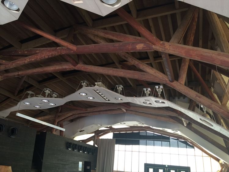 アカデミーの建物はご覧の通り、木、木、木・・・岐阜県産の木々がこれでもかというくらい使われております。この構造ならば鉄骨の方がという所も木!! アカデミー内に実験施設もあるので計算と実験で裏付けられた構造のようで、色々な意味で圧倒されました。
