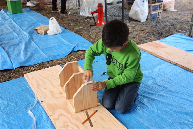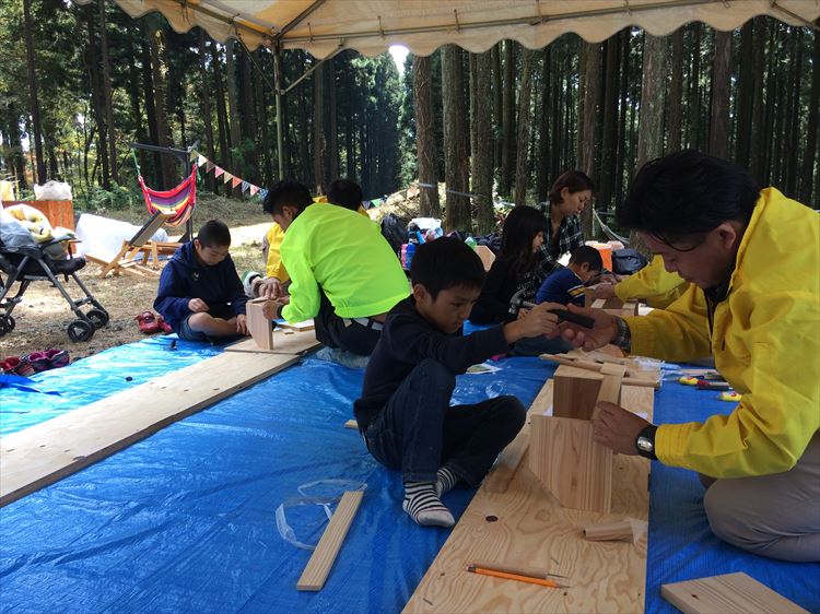 木こり体験の後は、「木工教室」。切り出された材料を釘で打ち付けて本棚を作りました。さすが大工の家系!筋が良い!って、私は大工ではありませんけど(笑)