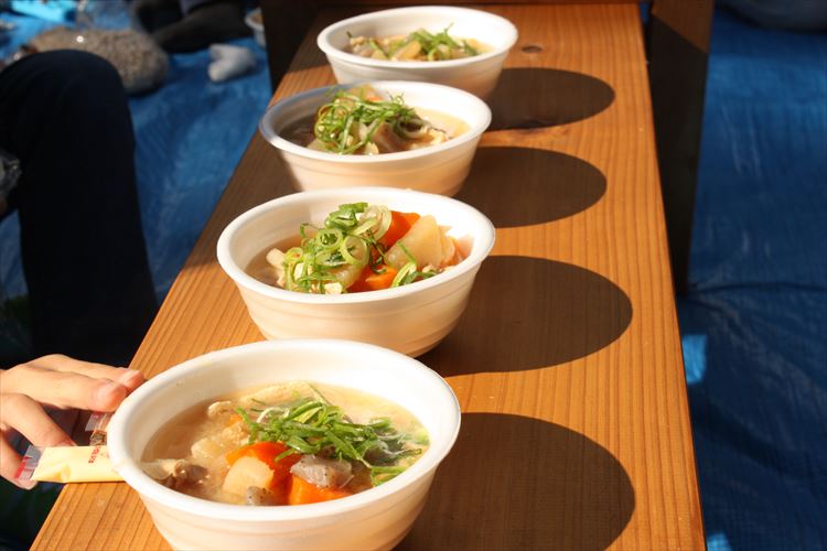 昼食にはお弁当の他に、富士山木造住宅協会特製の豚汁のサービス。山で食べる熱い豚汁、最高に美味しかったです!!