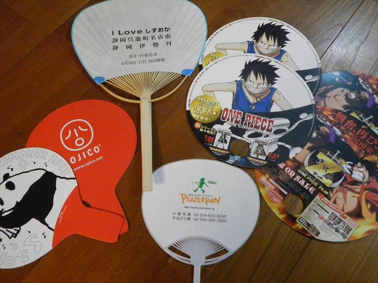 季節柄、行く先行く先で色々な団扇を頂き、一日でこんなに沢山になってしまいました。広告が入っていてビラ配りのようにジャンジャン配っていたものや、ご自由にお取り下さい的なもの、商品を買ったおまけで入っていたものなど様々でした。
