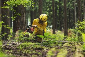 先日、これから工事が始まるお施主様と一緒に山に行き、ご自宅で使う予定の大黒柱の切り出しをしてきました。