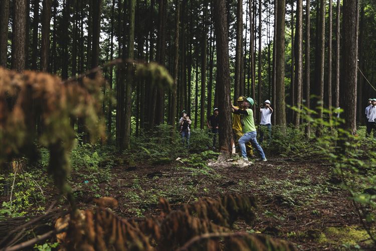 久米さんに私の想いをぶつけたところ、「だったら今伐っている木を使ったら良いじゃん」と、思いもよらない回答を頂き、その当時のお施主様にも私の想いをぶつけたところ、是非お願いしたい、山にも行きたい、自分で切ってみたい、という話になり、私のモヤモヤが一瞬にして解決してしまいました。