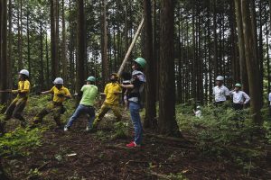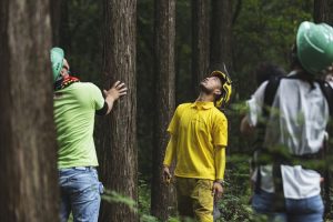 木こりのソマウッドの久米さんにご協力いただき、トラブルもありましたが(笑)、何とか力を合わせて切り倒しました。今まで何となく家づくりが始まるのかな~と思っていたお施主様も、一気に家づくりモードのスイッチが入ったようです。