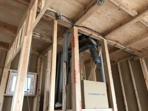 毎日の光熱費が削減され、10年後に迎える機器の交換も1台で済み、第1種換気のようなフィルター清掃の煩わしさがまったくなく、家の構造を上手く使用した全館冷暖房換気システムとなりました。文章で表現してもわかりにくいと思いますので、壁を張る前の今の時期に、その仕組みを確認していただきたいと思っております。