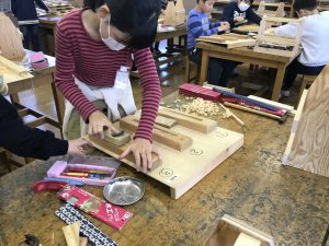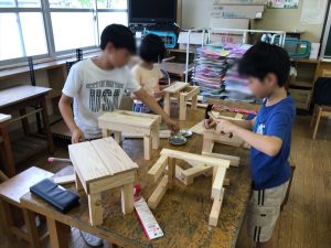 予算も限られていたので、極力、現場から出る端材を利用し、4年生から6年生までいるので、あまり難しい課題にしないようにと、毎回悩みながら考えてきました。