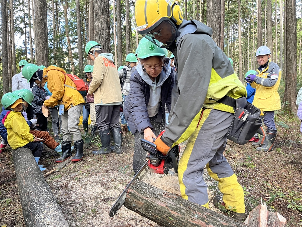 チェーンソーを使っての「玉切り」体験