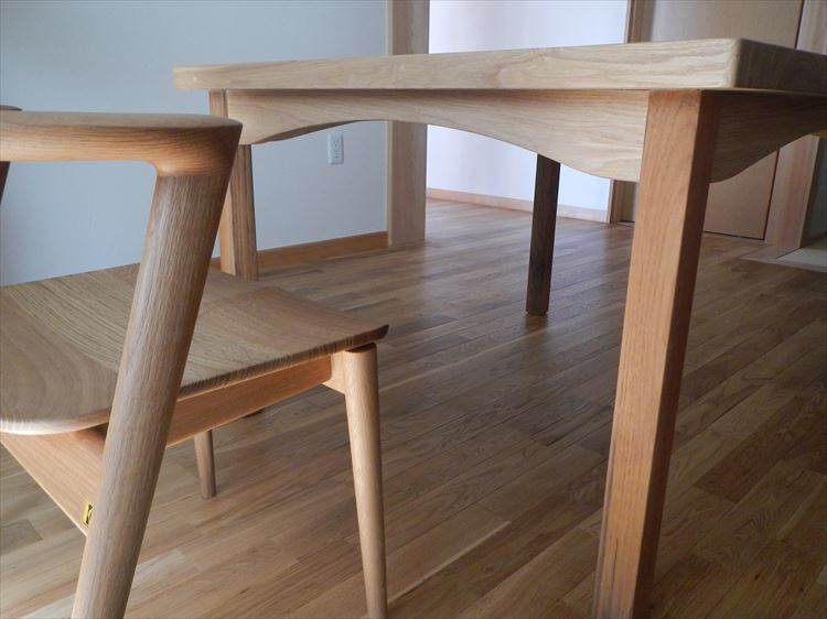 連休前、新築工事を施工させていただいたお客様よりダイニングテーブルの製作依頼がありました。色々と家具屋さんを見て回ったそうですが、お客様の希望するサイズのものがなかなか見つけることが出来なかったようです。そこで大功オリジナル家具で、希望する大きさと材種にてダイニングテーブルを作成することに致しました。