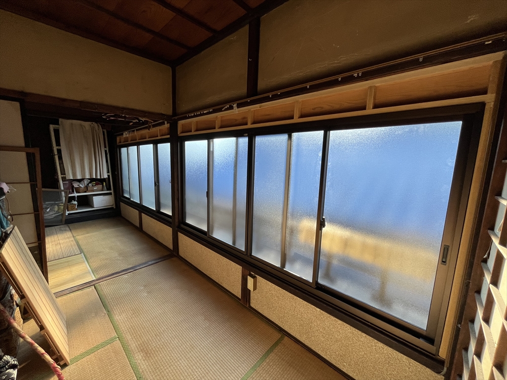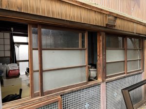 木枠のシングルガラスの所が多く