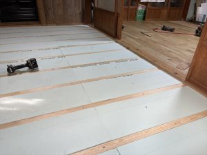根太の間に断熱材をはめ込み床仕上げ