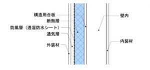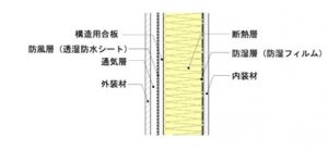 壁の中に通気層があって、常に呼吸できる環境が