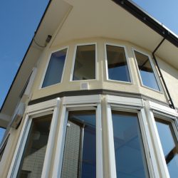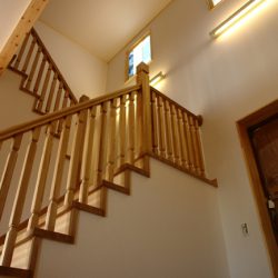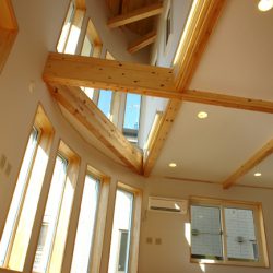 抜群のローケーションに建ち、太陽の光を有効利用した省エネ住宅は、優美な曲線の壁が映えるツートンカラーの家。ソーラーパネルはもちろんのこと、太陽の光を室内に呼び込むスカイライトチューブを静岡で初めて設けました。室内も自然素材にこだわり住む人にも環境にもやさしい空間を実現しています。