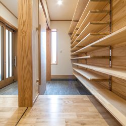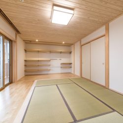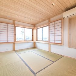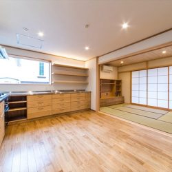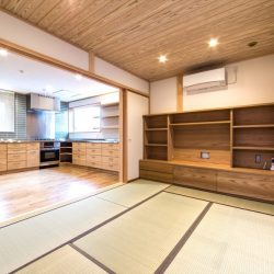 富士山の眺望が素晴らしい場所に建つ新換気システムを採用した大功の家。軒の出を大きく取り、日射の影響を考慮したパッシブハウス。エアコン1台稼働で住まいのベースの温湿度を調整し、省エネの暮らしを実現しております。窓枠や家具に至るまで無垢の木を採用した拘りの仕上げは、珪藻土の塗り壁に良く馴染みます。耐震等級3で断熱レベルがG2の長期優良住宅。住宅性能評価書とBELSにて、その性能値を証明しております。