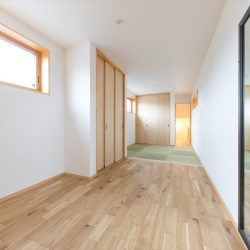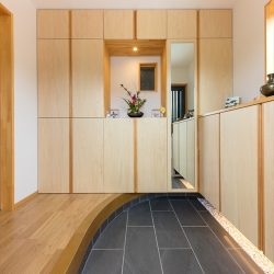 冬の朝に足元が寒くない家をというお施主様の要望を受けて、新換気システムを採用した大功の家。一年間、温湿度の実測値を測定させて頂きながら大功の家の性能を確認。お施主様からも「合格」の評価を頂くことが出来ました。玄関と裏の土間からのアプローチがあり、それぞれの動線に合わせた収納を細かく設計しました。もちろん耐震等級3で断熱レベルがG2グレードの大功の家。住宅性能表示やBELSにてその性能値を確認しておりますが、ほとんど冷暖房を使っていなかったというお施主様の声が、一番信憑性が有りますね。