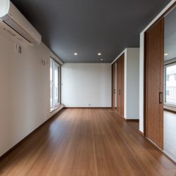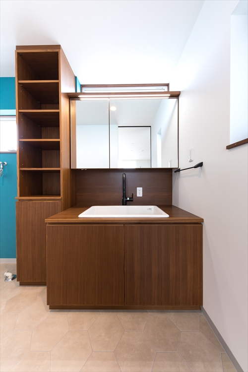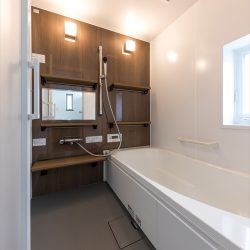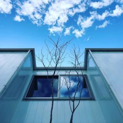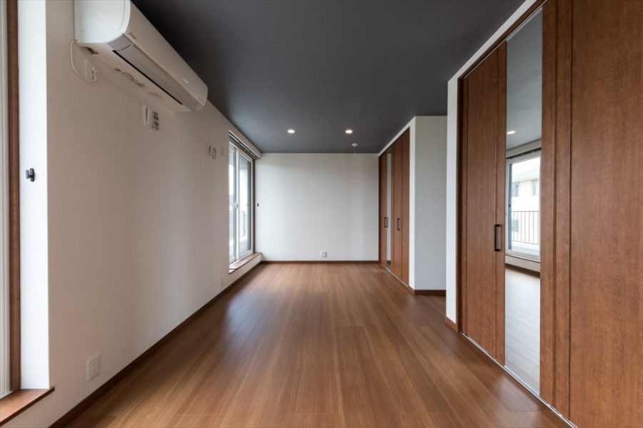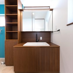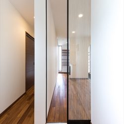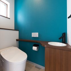 デザイン性の高い大矢さん設計の建物に大功の家の性能を掛け合わせたコラボハウス。チークの床色に合わせて家具も設計し、まとまりのある空間に仕上がりました。大開口の窓にはトリプルガラスを採用し省エネレベルも向上させました。許容応力度計算にて耐震等級3を確保し、広いリビングを実現。長期優良住宅や性能表示、BELSにて第三者機関の認証も受けております。真っ白な外観が周囲の緑にとても映えています。