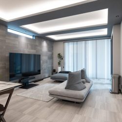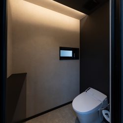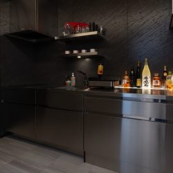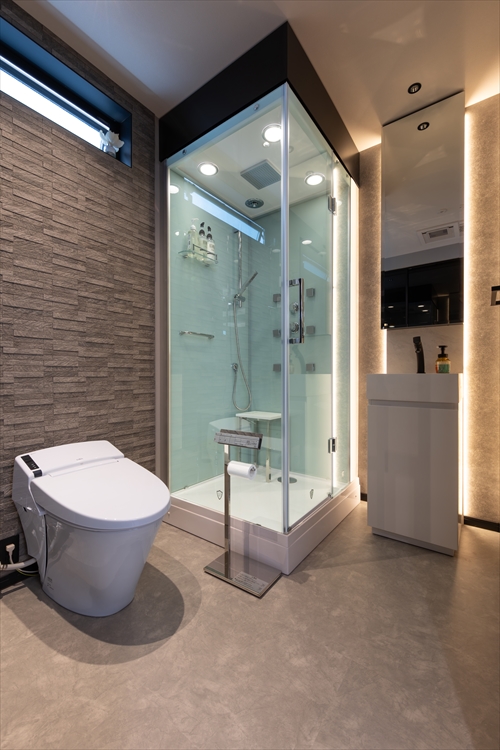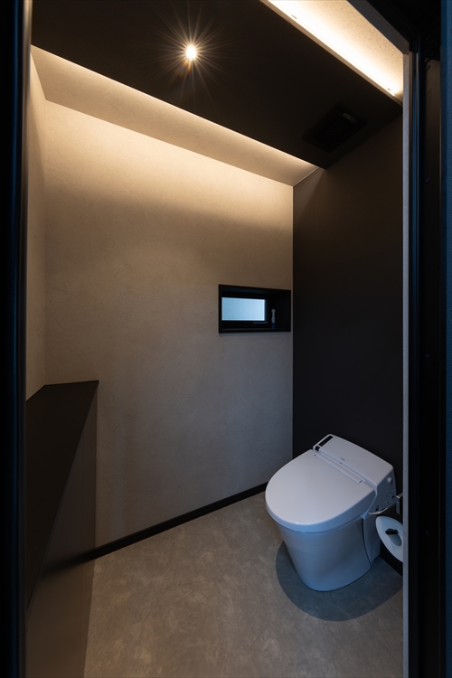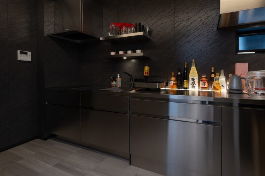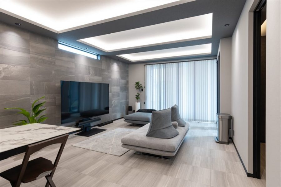 黒とグレーを基調とし、間接照明にてホテルライクな空間を表現。