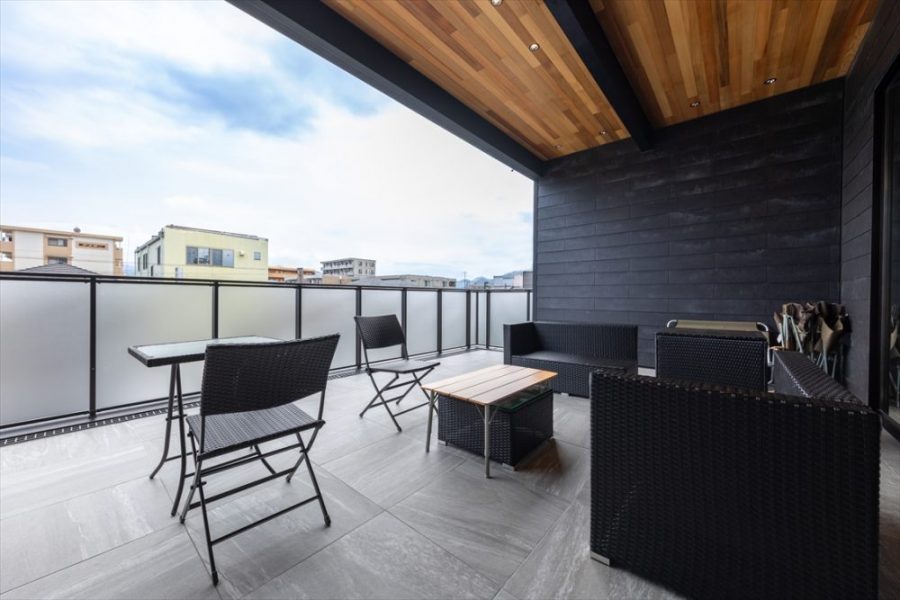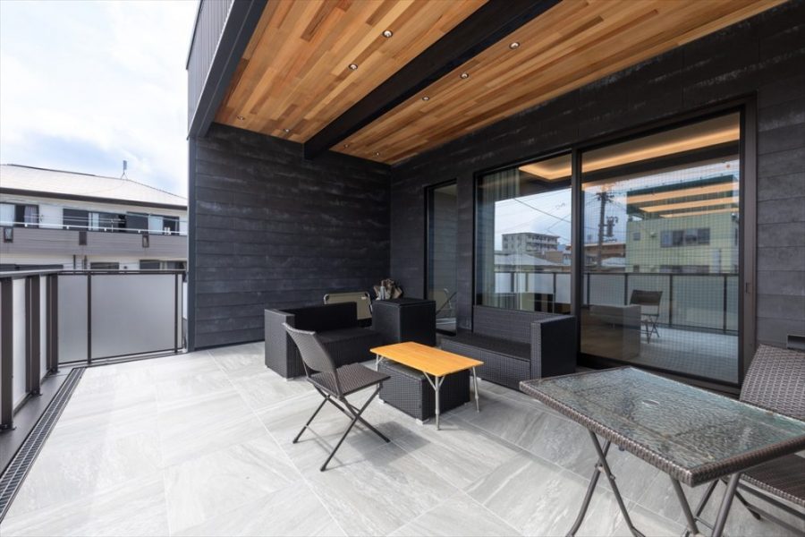 バルコニーは10人くらいの大人数でもバーベキューなどを楽しめるスペースを計画。懐が深いので、雨の日も気にせず遊べます。