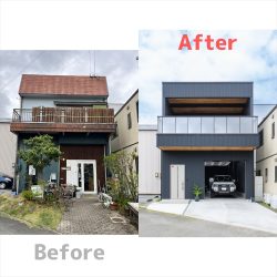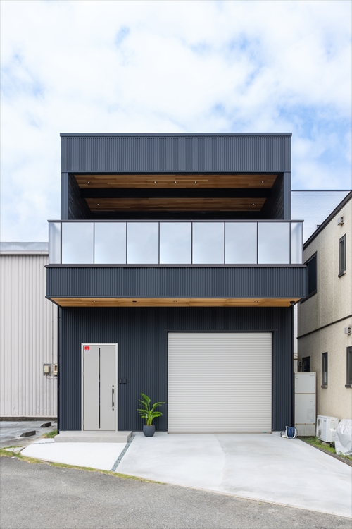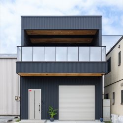 1階が喫茶店、2階が住居だった建物をフルスケルトン状態に解体し、1階をガレージ、2階をフリースペースに大規模リノベーションした建物です。